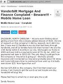 (Excerpt from interview, article or webpage): Vanderbilt Mortgage And Finance Complaint - Beware!!! - Mobile Home Loan http://mythreecents.com/showReview.cgi?id=29549 Mobile Home Loan - Complaint Review by parsonsbunch on 2007-11-11 SALISBURY, NORTH CAROLINA -- Anyone even thinking about getting a loan from this company please beware of them. Do lots of research on this company!! I did my research, but I did it too late. I have met 12 families in my city that had loans through Vanderbilt, and all 12 families have lost their homes!! We are the 13th family within 6 months in our city. We bought our home in 2005 and was told our payments were $770. By Jan. 2007 our payments had risen to $912.00. The only thing I could get from the company is "insurance is going up". We had a private insurance and I contacted our insurance probably about 50 times and I was told every time no premiums have went up it actually went down $25. Now figure that out? We lost $35,000 to this company. Don't let them steal your money. I am trying to get the word out and maybe one day Vanderbilt will stop this. Please feel free to email me or even give me a call. Sandy Parsons |