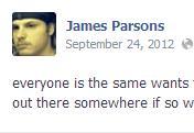 (Excerpt from interview or article) (www.facebook.com) https://www.facebook.com/james.parsons.140 James Parsons Monday, September 24, 2012 at 5:46am everyone is the same wants the same these days where is the real deal is it/her still out there somewhere if so where is she |
